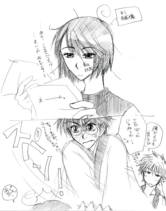 かといって、文章もかけないので。・・・プロット起こしてると、だんだん台本になって逝くからね・・・。国語2~3の奴に書けってドダイ無茶な話さ。